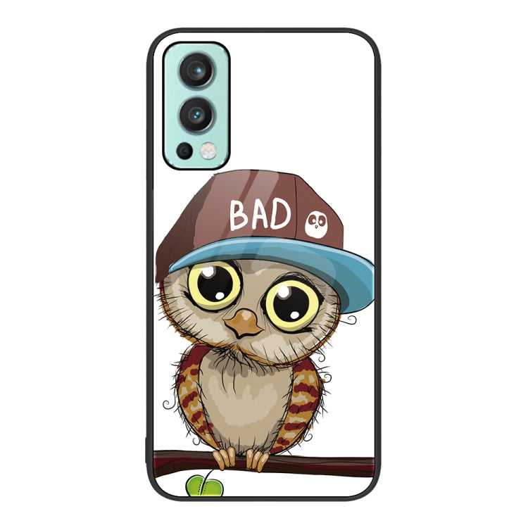 Caja de Teléfono de Vidrio Pintado Colorido para OnePlus Nord N100 (Búho)