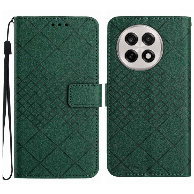 Funda de Cuero con Textura de Cuadrícula Rómbica para OnePlus 13 (Verde)