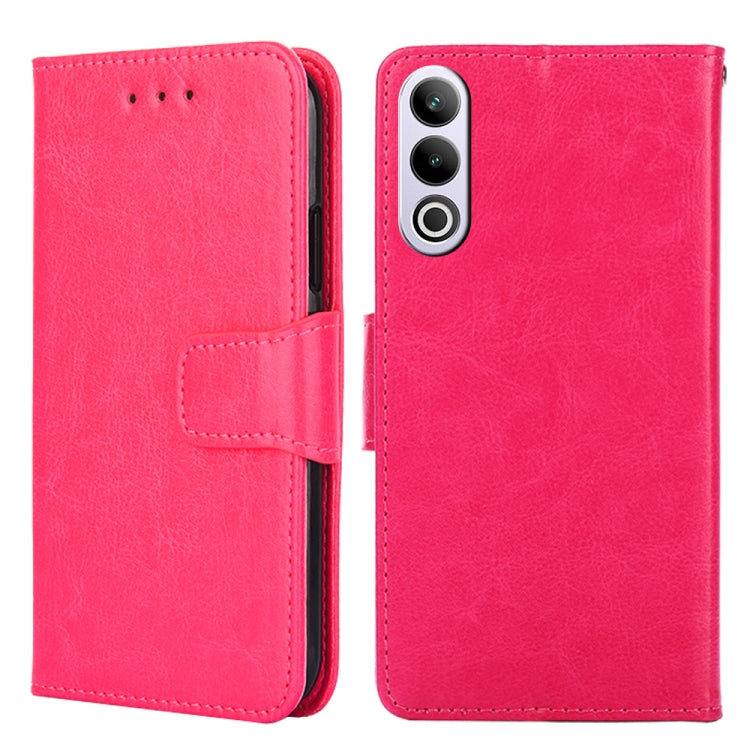 Funda de Cuero con Textura de Cristal para OnePlus Ace 3V 5G (Rojo Rosa)
