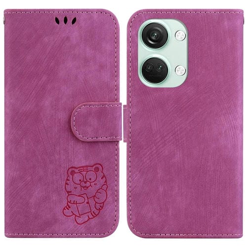 Funda para OnePlus Nord 3 de Cuero con Relieve Little Tiger (Rojo Rosa)