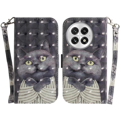 Funda de Cuero con Tapa Horizontal 3D para OnePlus 13 (Gato Blanco y Negro)
