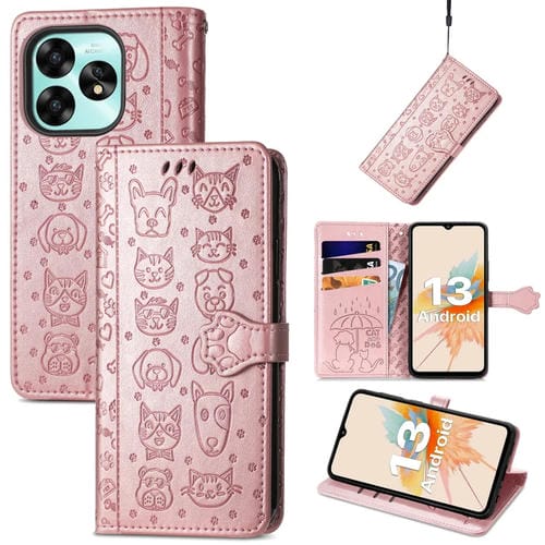 Funda para Umidigi A15C de Cuero con Relieve de Perros y Gatos (Oro Rosa)