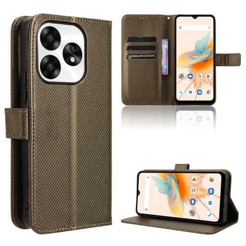 Funda de Cuero para Umidigi A15 y A15C con Textura de Diamante (Marrón)