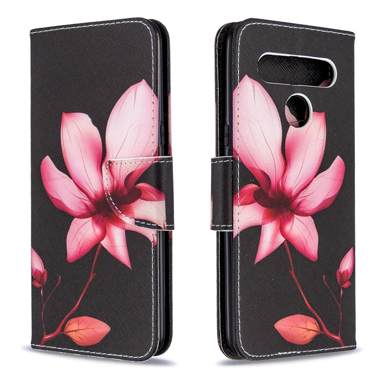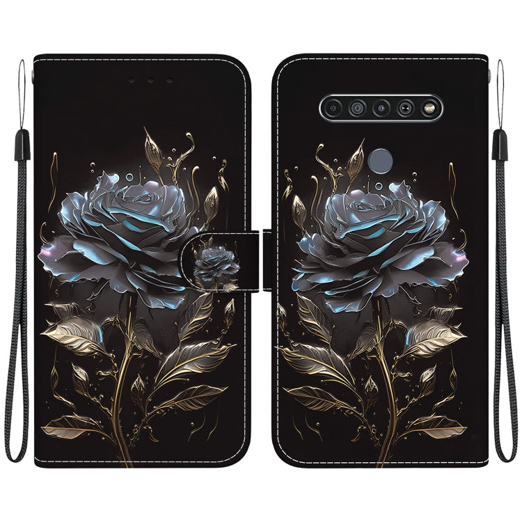 Estuche de Cuero para LG K61 con Dibujo Coloreado y Textura de Cristal (Rosa Negra)