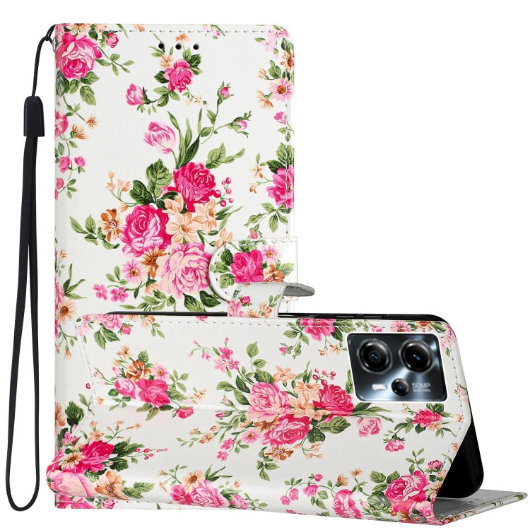 Estuche de Cuero para Motorola Moto G13 G23 G53 con Dibujo Coloreado Peonías