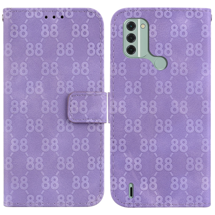 Estuche para Nokia C21 Plus de Cuero en Relieve con Doble Forma de 8 (Púrpura)