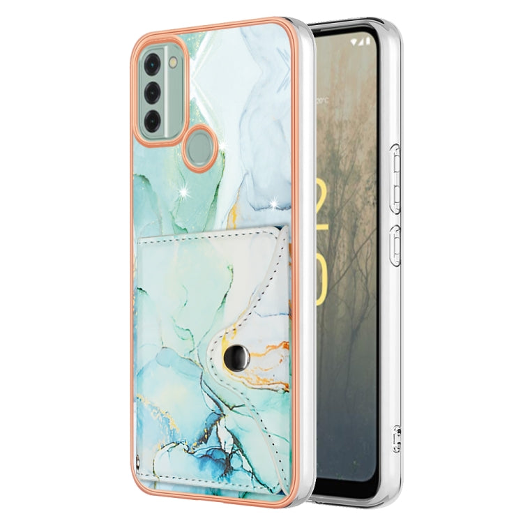 Estuche para Nokia C31 con Ranura para Tarjeta IMD y Patrón de Mármol (Verde)
