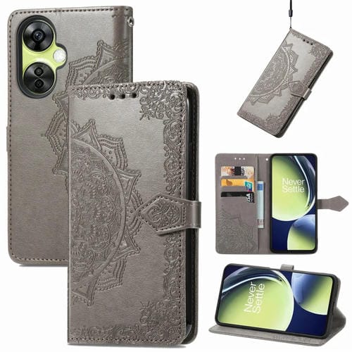 Estuche para OnePlus Nord Ce 3 Lite Mandala Flower de Cuero En Relieve (Gris)