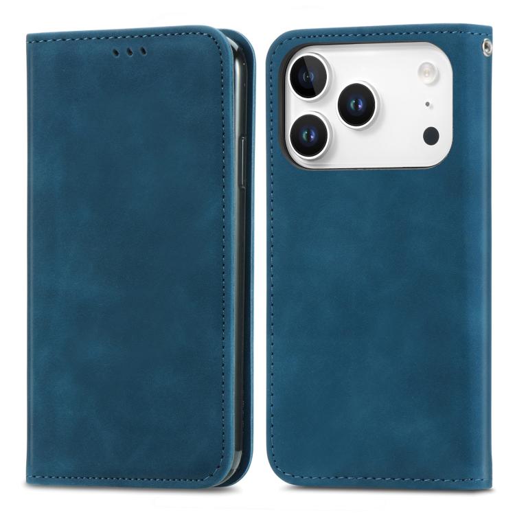 Funda de cuero con tapa magnética y diseño retro para iPhone 17 Pro Max (azul)