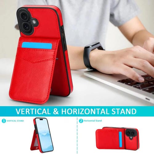 Funda de PU con ranuras para tarjetas para iPhone 17 (color sólido, rojo)