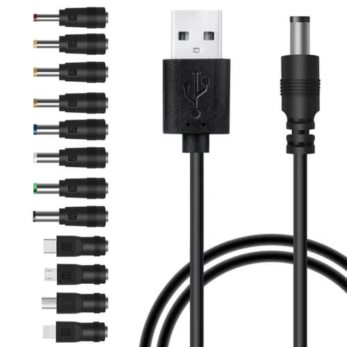 • 1x Cable de Alimentación DC USB 12 en 1 Multifunción Intercambio y Carga (Negro)