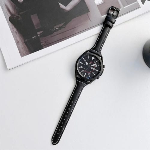 Correa de Reloj 22mm Cuero Reemplazo Costura Tejido Liso Cintura Pequeña (Negro)