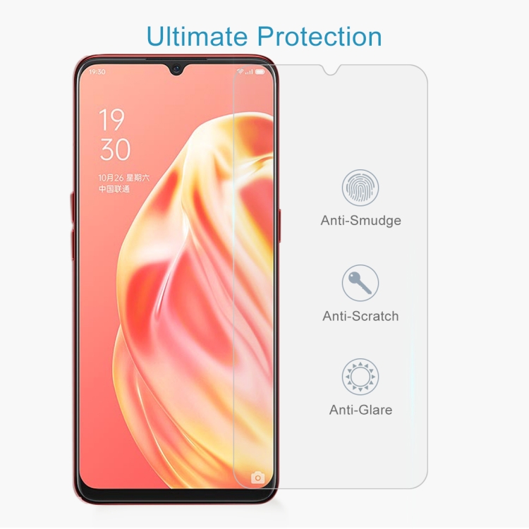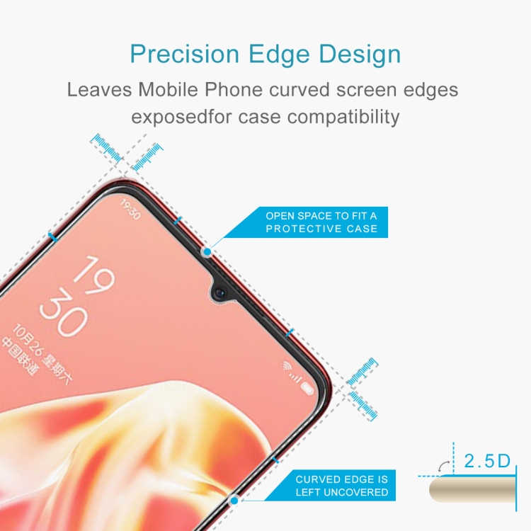 50 PCs 0.26mm 9H Dureza de la Superficie 2.5D Película de Vidrio Templado a Prueba de Explosiones sin Cintas de Pantalla para Oppo A91