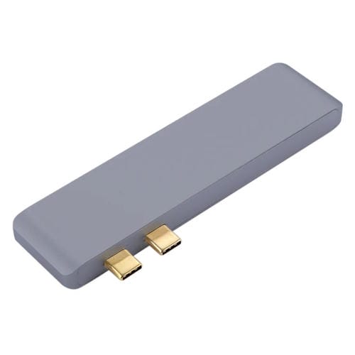 Adaptador Concentrador USB-C 6 en 1 de Aleación de Aluminio con 2 Puertos USB 3.0, 2 Puertos USB-C, Ranura SD/TF para MacBook (2015/2016/2017) (Gris)