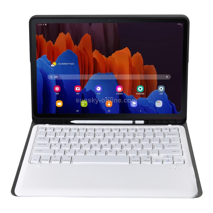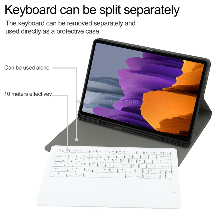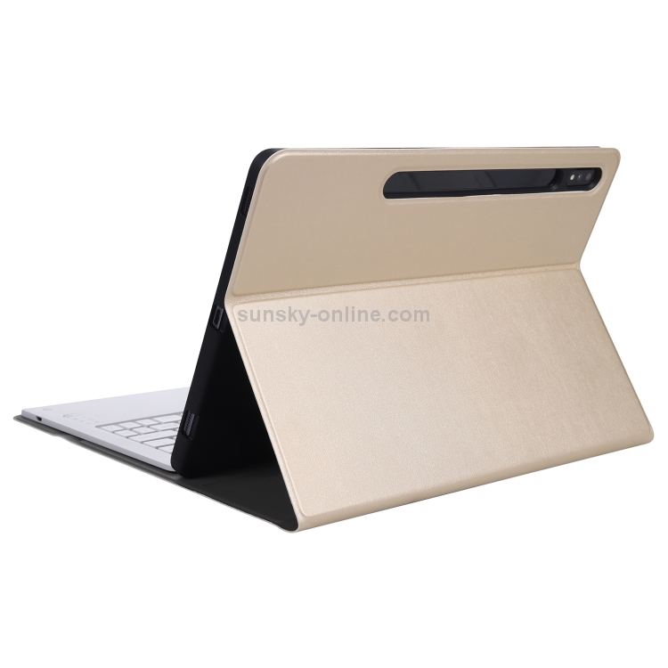 - 1x Teclado Bluetooth desmontable A970B con funda de cuero flip y ranura para pluma para Samsung Galaxy Tab S7 FE T730/T736/S7+ T970/T975/T976 (Oro)