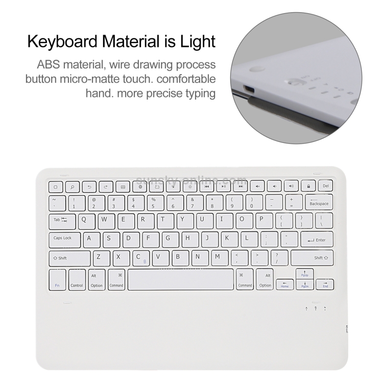 - Teclado magnético desmontable, Batería de polímero de litio de 200mAh, voltaje de Carga 3.7V, entrada Micro USB 5V, tiempo de Carga 3-4 horas, tiempo de espera aproximado 100 días, tiempo de trabajo continuo 100 horas, distancia de Conexión Bluetooth hasta 10 metros, agujeros para Cámaras Frontales y Traseras