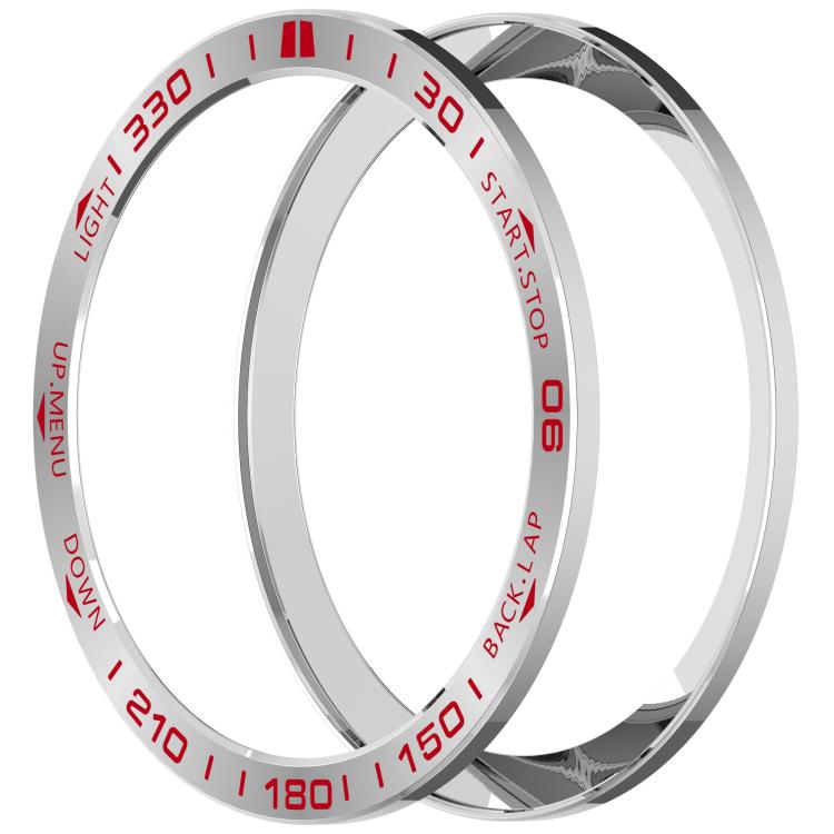 Anillo protector de acero inoxidable para reloj Garmin Tactix 8 Solar de 51 mm (estilo Compete Speed) (plata y rojo)