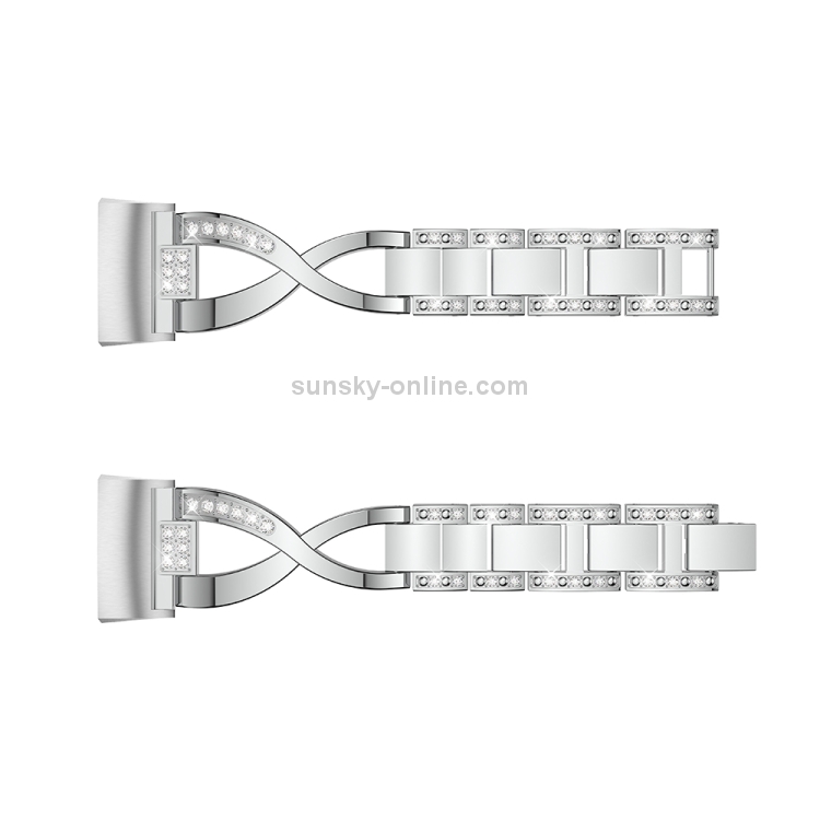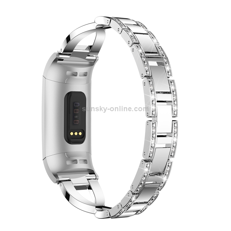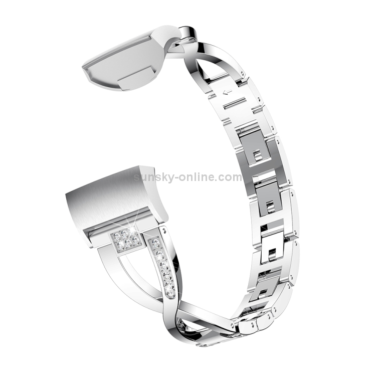 Banda de Reloj de acero metal diamante forma X para Fitbit 3 (Plata)