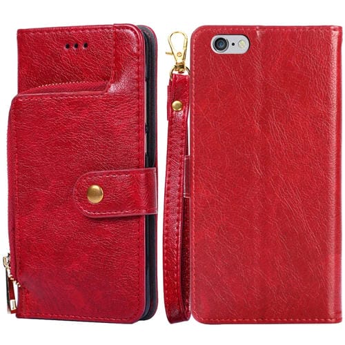 Bolsa de Cremallera PU + TPU Funda de Cuero Horizontal Flip con Soporte Ranura Tarjeta Billetera y Cordón para iPhone 6 / 6S (Rojo)