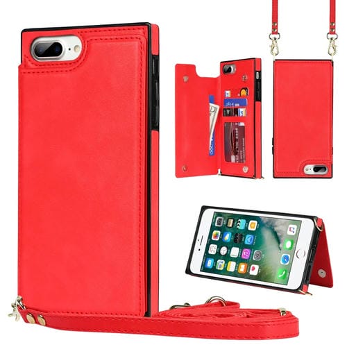 Bolsa de tarjetas iPhone 8 Plus 7 Plus TPU y PU con tapa doble hebilla y ranuras (Rojo)
