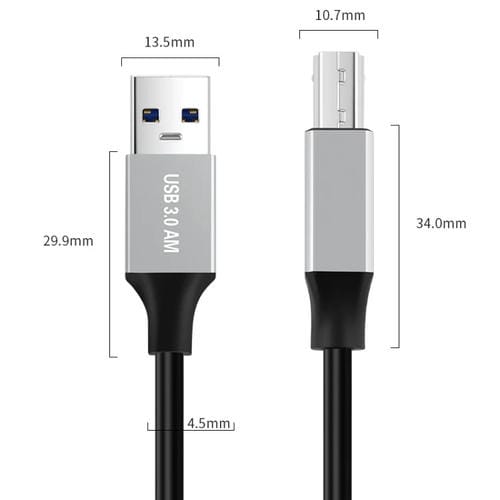El Cable Adaptador de transmisión de datos USB 3.0 a USB-B cuadrado de 2 metros está diseñado para conectar impresoras y otros dispositivos con interfaz USB-B de manera eficiente y segura. Compatible con la mayoría de dispositivos que utilizan Puerto USB-B cuadrado, este Cable facilita la transferencia rápida de datos gracias a su tecnología USB 3.0. Su construcción robusta y materiales de alta calidad garantizan una Conexión estable y duradera, ideal para usuarios que requieren una transmisión fiable de archivos grandes y una Conexión sin interrupciones.