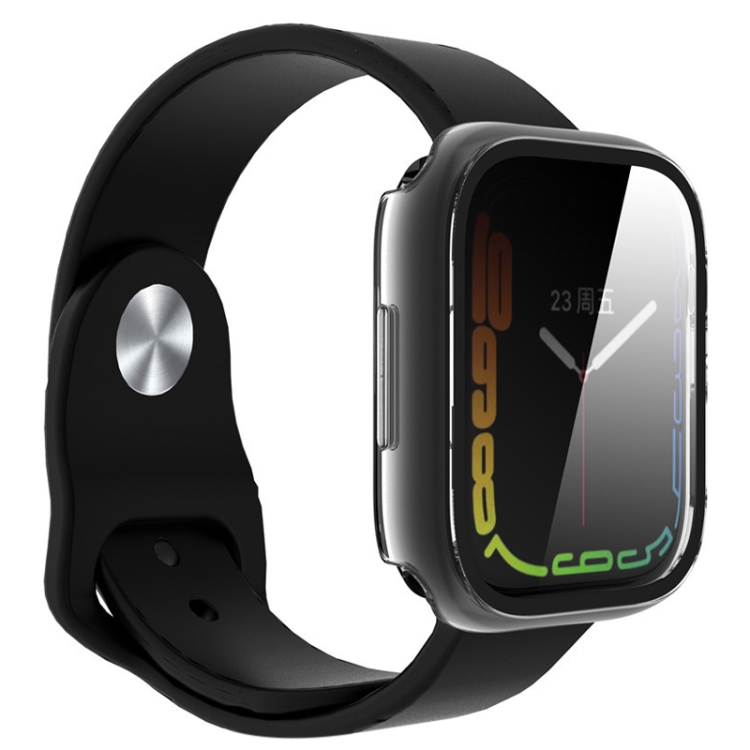 Caja de Reloj de PC con Vidrio Templado para Apple Watch Series 8 y 7 45mm (Transparente)