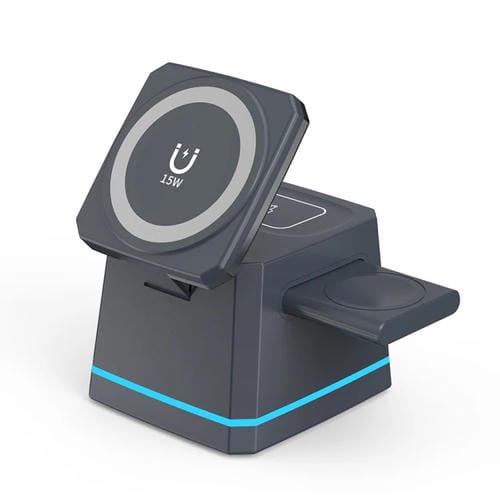 Cargador inalámbrico multifunción H49 3 en 1 (Gris oscuro)