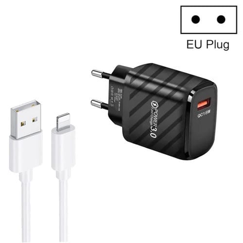 Cargador rápido USB TE-005 QC3.0 18 W con cable USB 1 m 3 A a 8 pines (Negro)