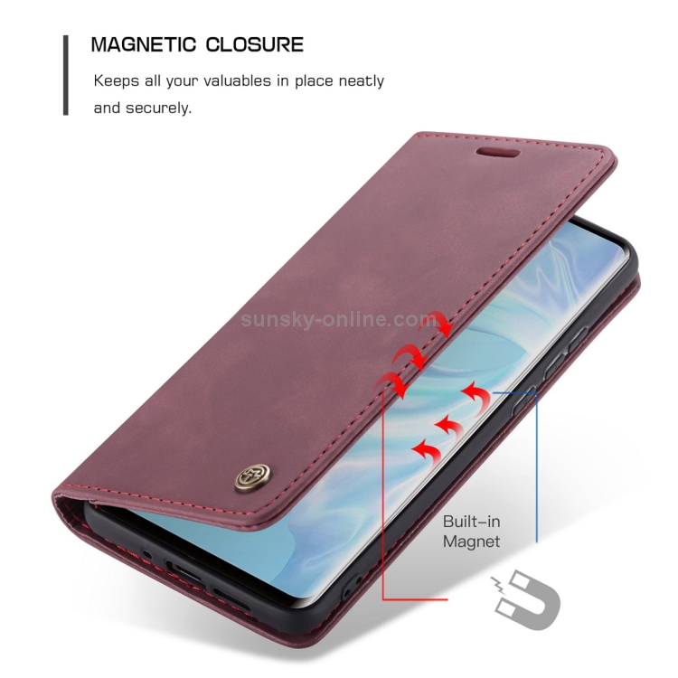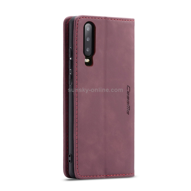Estuche multifuncional Caseme-013 de cuero abatible horizontal para Huawei P30 con ranura para tarjeta soporte y billetera (Rojo Vino)
