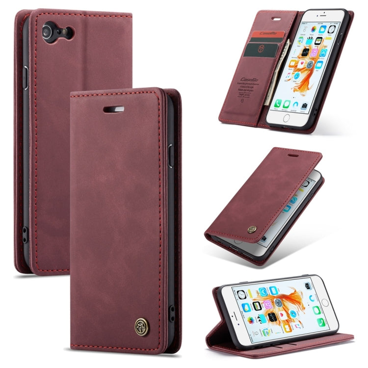 Estuche Multifuncional Caseme-013 Cuero Abatible Horizontal Retro para iPhone 6 / 6S (Rojo Vino)