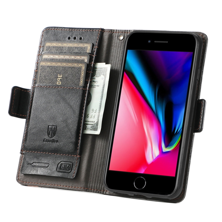Funda de cuero Caseno Empalme de Negocios Dual Hebilla Magnética Horizontal Flip con Soporte y Billetera para iPhone 6 (Negro)