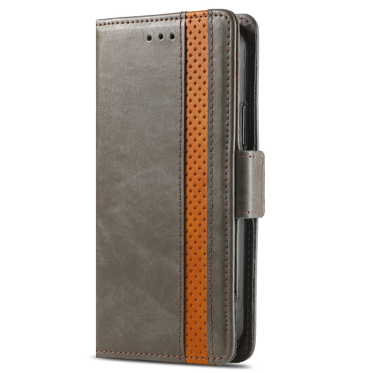Funda de Cuero Caseno Empalme de Negocios Dual Hebilla Magnética Horizontal Flip con Titular y Billetera para iPhone 6 (Gris)