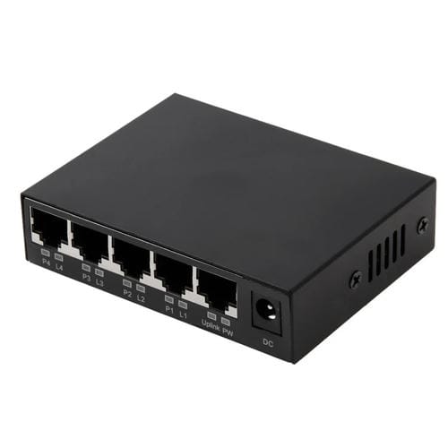 • 1x Conmutador PoE 5 Puertos 10/100Mbps IEEE 802.3af para Red y Alimentación Ethernet de AP, Teléfono VoIP y Cámara IP