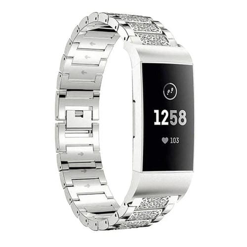 Correa de acero inoxidable con diamantes de imitación para Fitbit Charge 4/3 de 18 mm (plata)