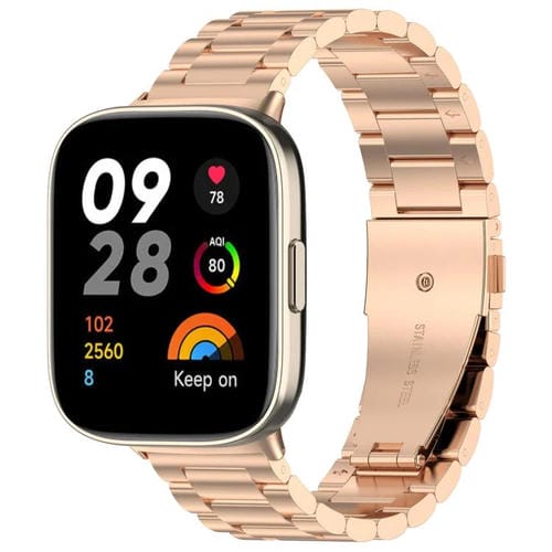 Correa de acero inoxidable de tres cuentas para Redmi Watch 3 xDfind (oro rosa)