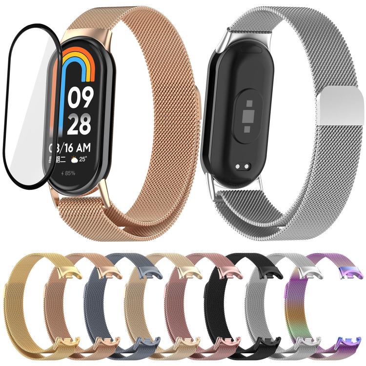 Correa de acero inoxidable milanesa con película curva 3D para Xiaomi Smart Band 9/9 NFC (negra)