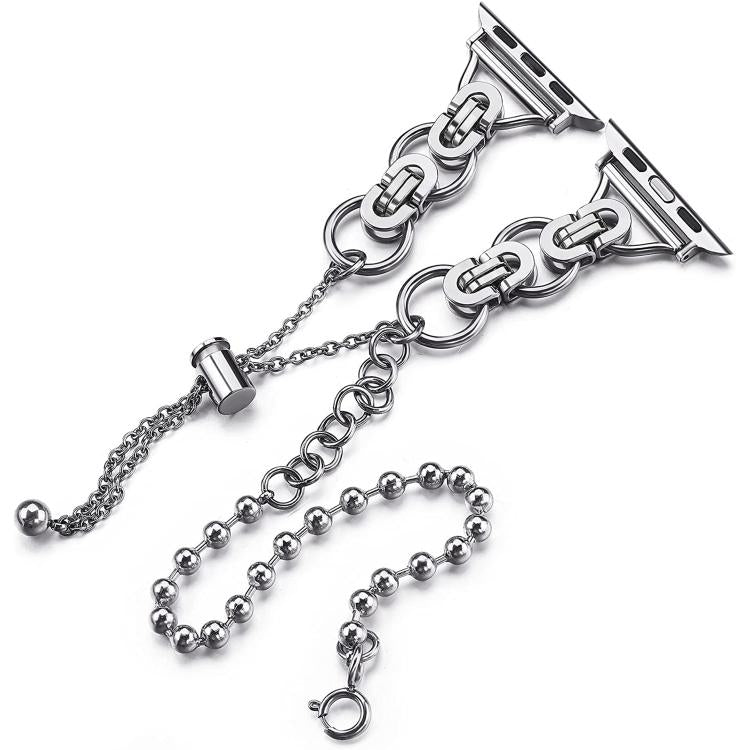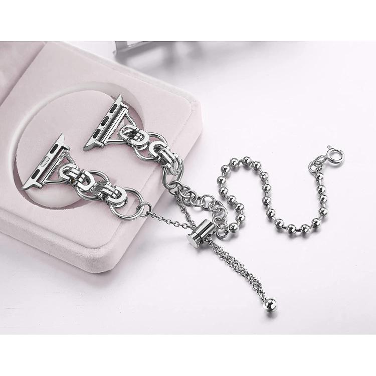 Correa de aleación de zinc con cadena de cuentas de doble círculo para Apple Watch de 42 mm, 41 mm, 40 mm y 38 mm (plateada)