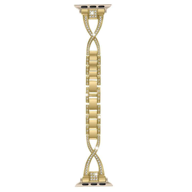 Correa de aleación de zinc con diamantes cruzados para Apple Watch de 42 mm, 41 mm, 40 mm y 38 mm (dorada)