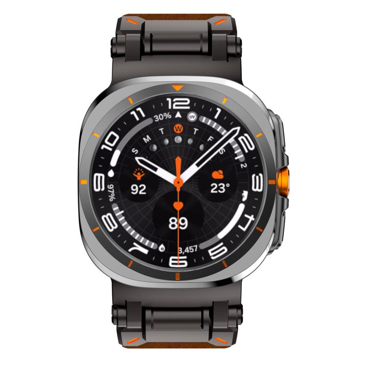 Correa de cuero con cabeza de acero inoxidable Explorer para Samsung Galaxy Watch Ultra de 47 mm (negro Crazy Horse)