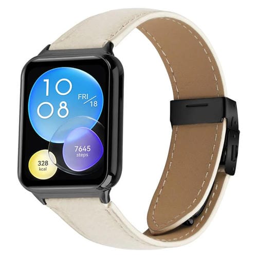 Correa de cuero con hebilla trasera de tortuga negra con textura de lichi para Xiaomi Smart Band 9 Pro y Redmi Watch 5 (blanco cremoso)