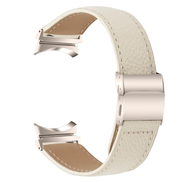 Correa de cuero con hebilla trasera de tortuga y textura de lichi para Samsung Galaxy Watch 7 (40/44 mm) (blanco cremoso)