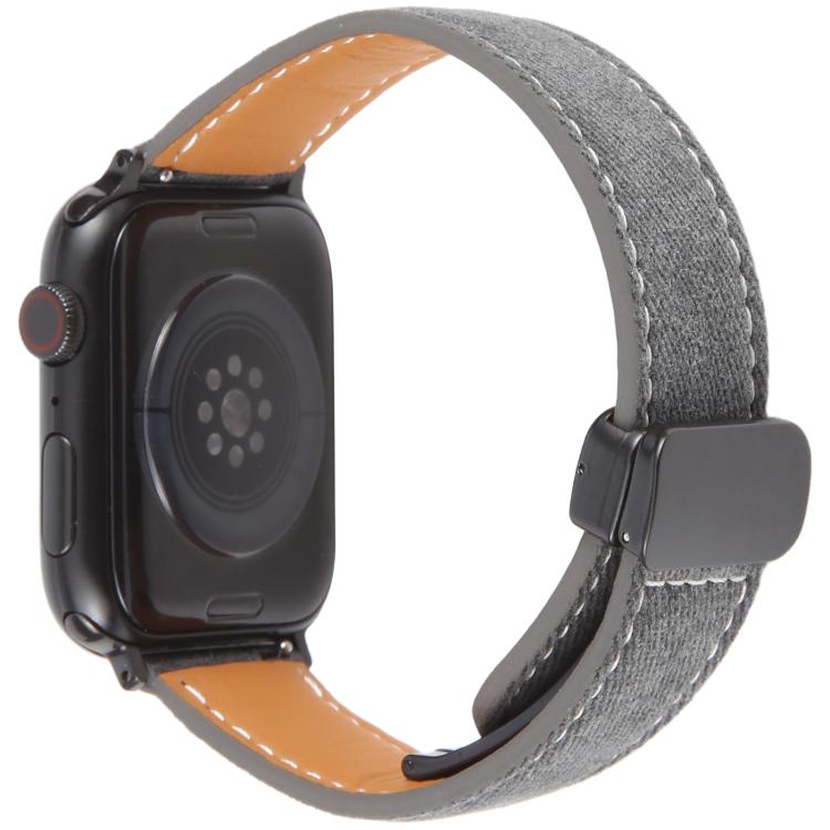 Correa de cuero vaquero con hebilla magnética plegable para Apple Watch de 42 mm, 41 mm, 40 mm y 38 mm (negra)