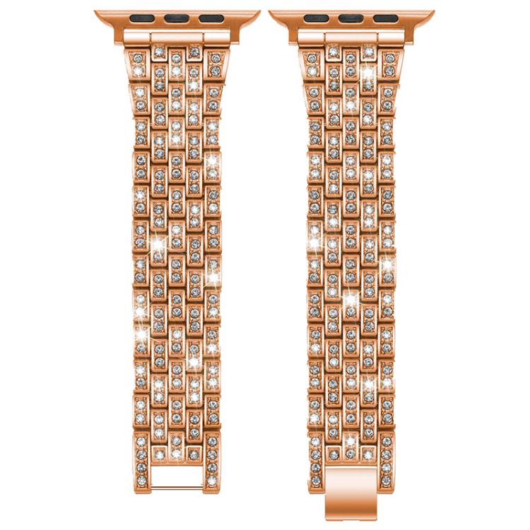 Correa de metal con cinco cuentas y diamantes para Apple Watch de 42, 44, 45, 46 y 49 mm (oro rosa)