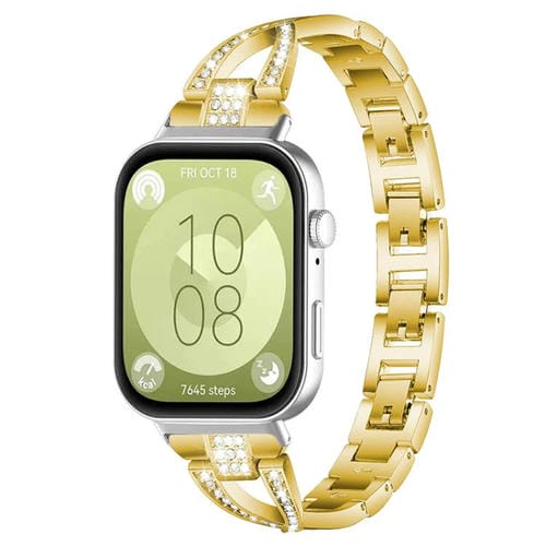 Correa de metal con diamantes de una sola fila en forma de X para Huawei Watch Fit4 / Fit4 Pro / Fit3 xDfind (dorada)