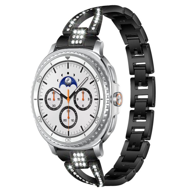 Correa de metal con diamantes de una sola fila en forma de X para Samsung Galaxy Watch8/8 Classic xDfind (negra)