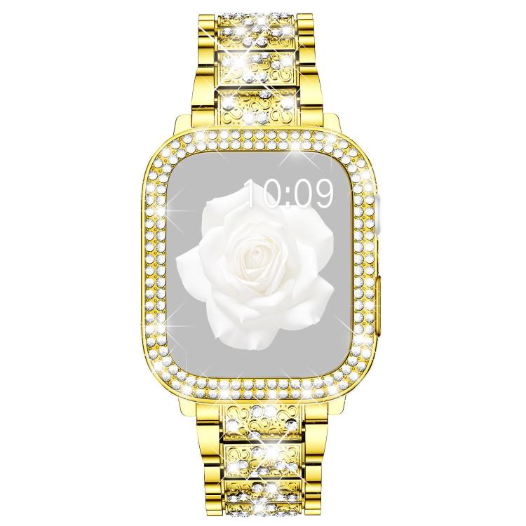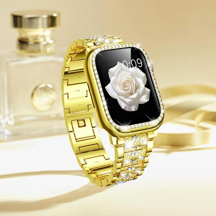 Correa de metal con diamantes y estuche para Apple Watch Series 41 mm xDfind (dorada)