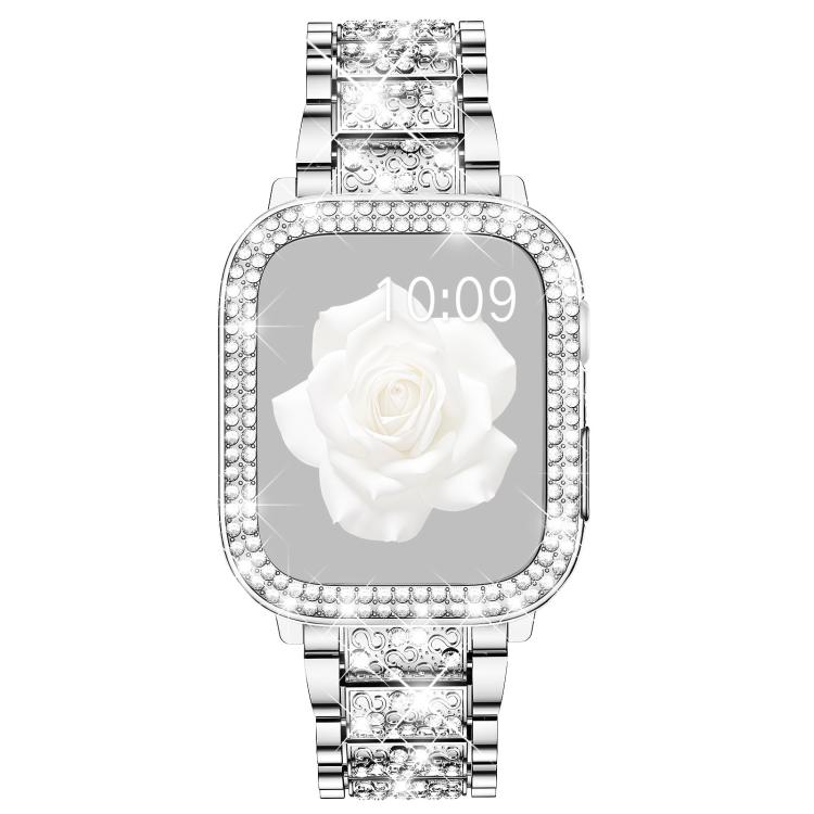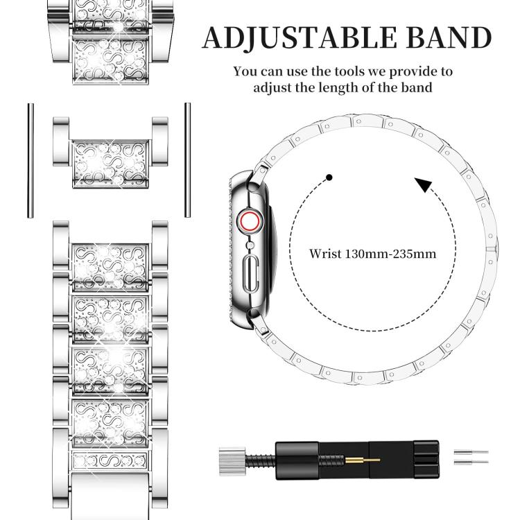 Correa de metal con diamantes y estuche para Apple Watch Series 45 mm xDfind (plateada)