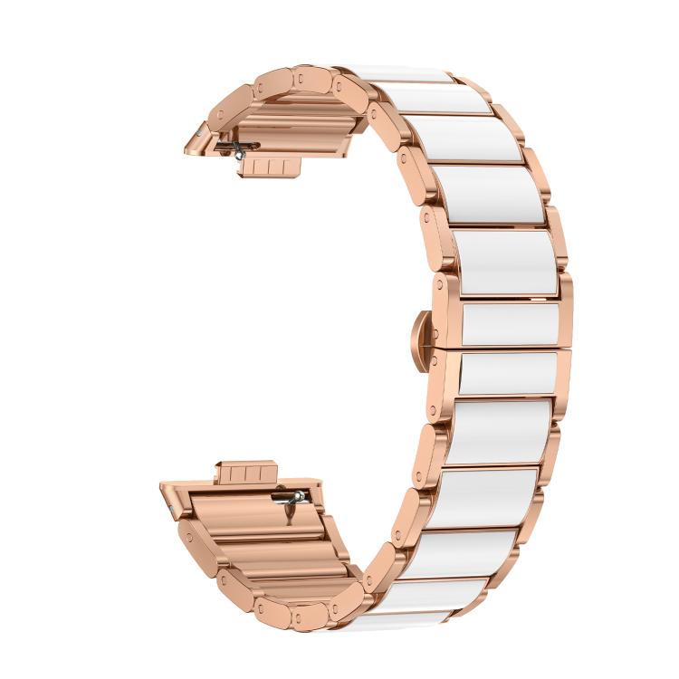 Correa de metal con hebilla de mariposa de cerámica blanca para Huawei Watch Fit4 / Fit4 Pro / Fit3 (oro rosa)