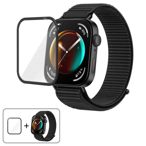 Correa de nailon con cierre de velcro y película curva 3D para Huawei Watch Fit 4 (negra)