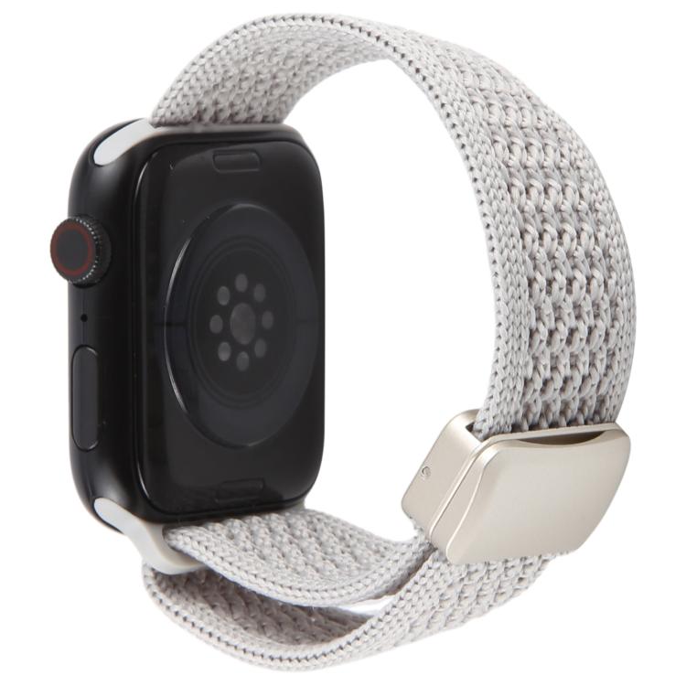Correa de nailon transpirable con hebilla magnética para Apple Watch de 46 mm, 49 mm, 45 mm y 44 mm (blanco perla).